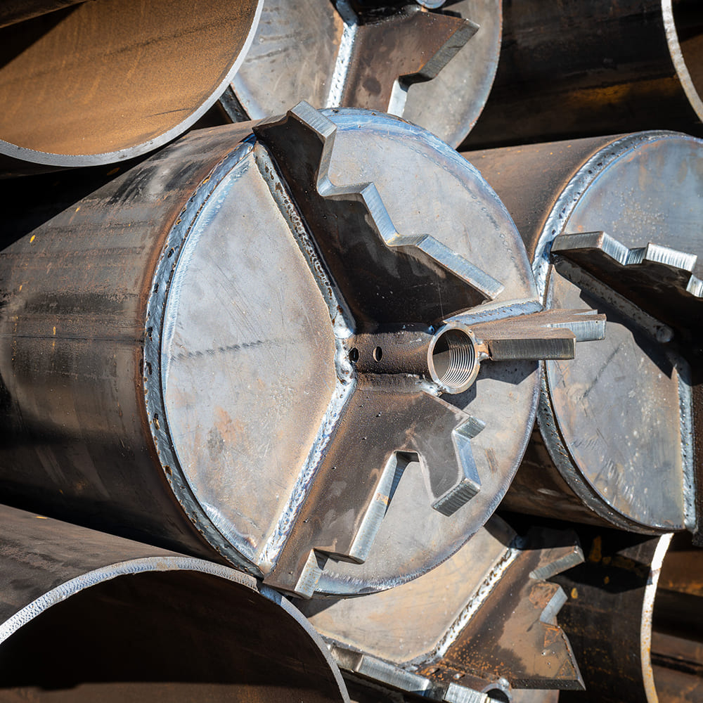 Das angeschweißte Bauteil dient als verstärkter Anschluss- oder Befestigungspunkt für Montage, Verankerung oder weitere konstruktive Arbeiten. Dank unserer modernen Schweißanlagen und der Kompetenz unserer zertifizierten Schweißer wurden diese Stahlbohrpfähle vollständig für ein spezialisiertes Gründungsprojekt maßgefertigt. Jedes Rohr erfüllt exakt die geforderten Toleranzen und Qualitätsanforderungen des Kunden.