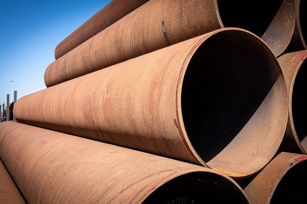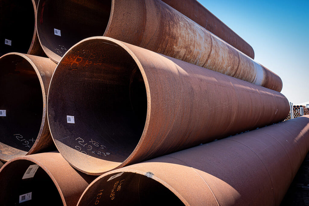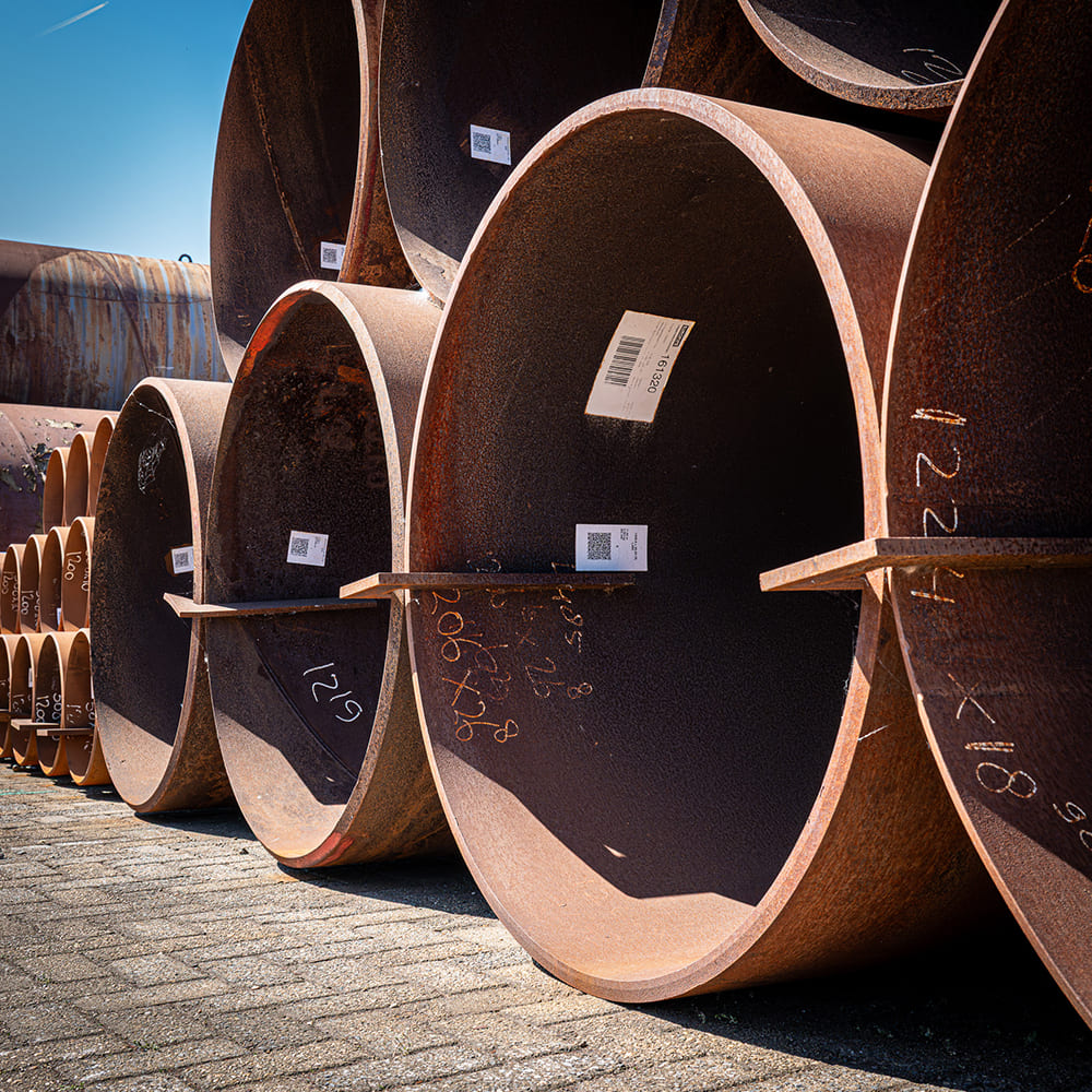 Aktuell verfügt Solines über eine umfangreiche Partie großer spiralgeschweißter Stahlrohre Ø1200 mm in den Stahlqualitäten X65 und L415. Die Stahlrohre sind in verschiedenen Wandstärken verfügbar und haben eine Gesamtlänge von ca. 120 Metern bei einem Gesamtgewicht von rund 72 Tonnen. Diese Partie befindet sich auf Lager in Moerdijk und ist direkt für verschiedene Projekte einsetzbar.