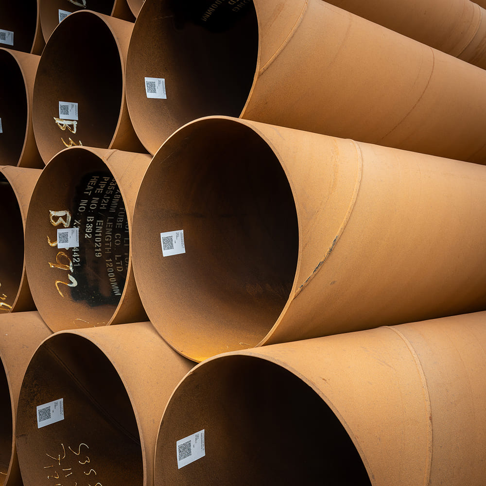 Falls die Standardlänge von 12,00 Metern nicht zu Ihrem Projekt passt, können die Rohre über Solines Welding & Construction präzise nach Vorgabe zugeschnitten oder auf Länge geschweißt werden. Dadurch erhalten Sie montagefertiges Material, das exakt auf Ihre technische Planung abgestimmt ist – effizient und passgenau.