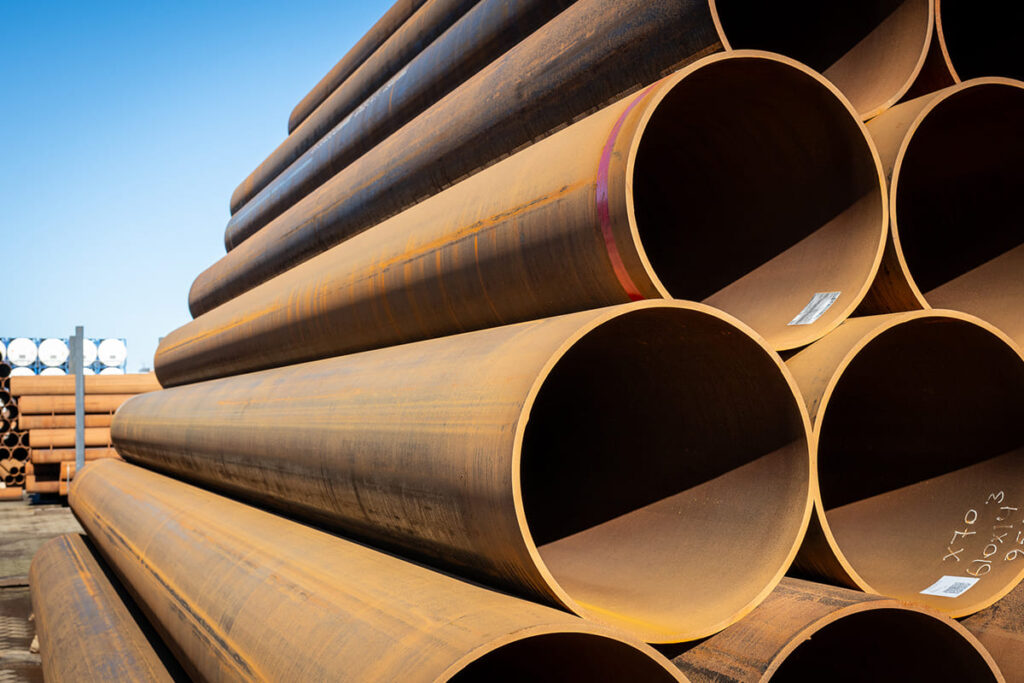 Diese Woche hat Solines GmbH in Dortmund eine interessante Partie im Bild. Es handelt sich um längsnahtgeschweißte Stahlrohre Ø 610,0 x 14,30 Millimeter in der Stahlsorte X65 gemäß EN10219, mit einer Gesamtlänge von mehr als 1.400 Metern und einem Gesamtgewicht von über 300 Tonnen. Diese schweren Konstruktions- und Gründungsrohre sind ab Lager sofort verfügbar und eignen sich für Anwendungen im Tiefbau, in der Infrastruktur sowie im Stahlbau.